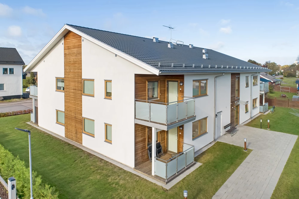 Att bygga flerbostadshus i trä med vårat klimatsmarta koncept ger dig som entreprenör och fastighetsägare många fördelar. Vi bygger i förnyelsebara och ekologiska material där trä utgör stommen i huset. Vi bygger våra flerbostadshus i moduler inomhus i vår fabrik. Våra flerbostadshus kännetecknas av flexibel gestaltning, yteffektiva bostäder, låga driftskostnader och korta leveranstider.
